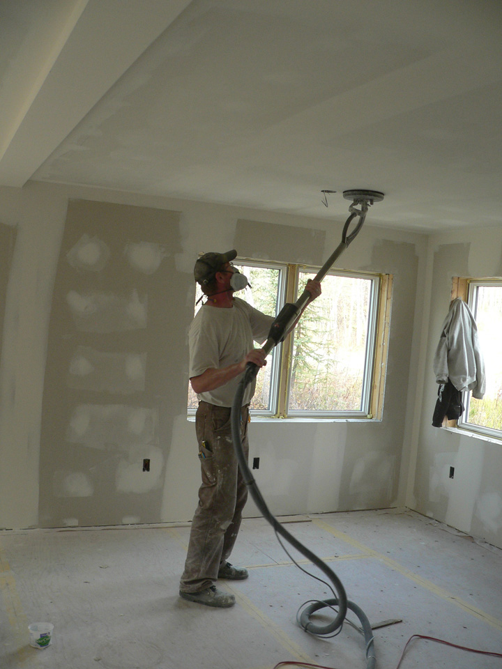 We prep the drywall and once sanding is complete, we vacuum up the dust and are ready for priming and painting the walls and texturizing the ceilings.